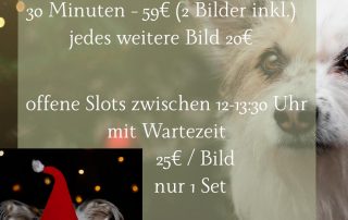 Anmelden, einen Zeitslot bekommen, vorbeischauen und tolle Weihnachtsbilder machen lassen – natürlich frühzeitig, sodass sie für Weihnachten längst fertig sind und du sie für deine Weihnachtsgrüße nutzen kannst!