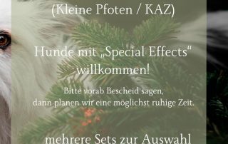 Die Sets sind auf kleine bis mittelgroße Hunde ausgelegt. Große Hunde sind ebenso möglich, allerdings konzentrieren wir uns hier mehr auf Portraits als auf Ganzkörperaufnahmen.